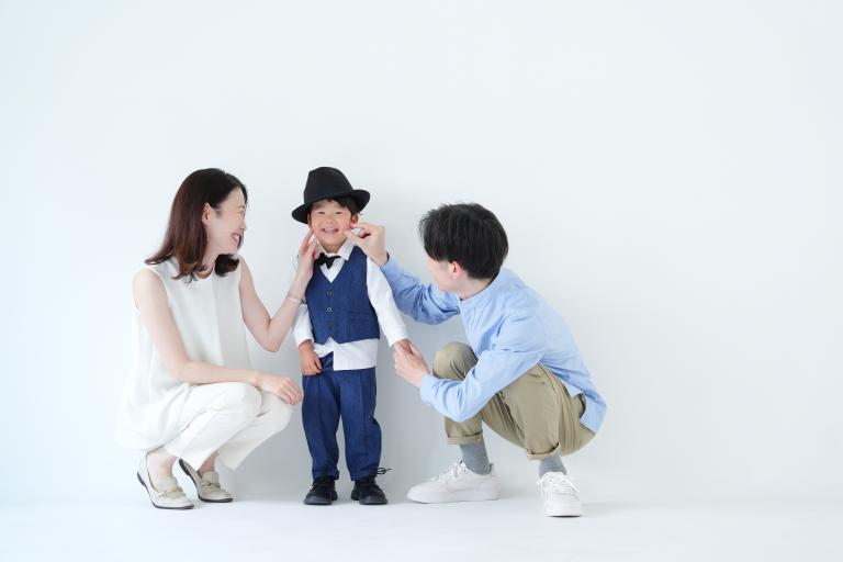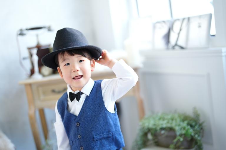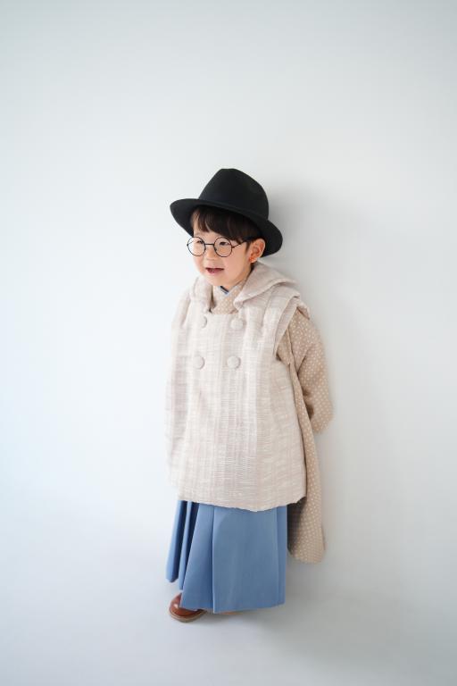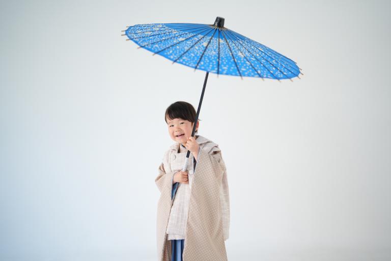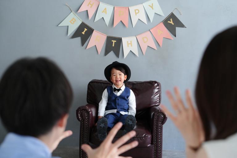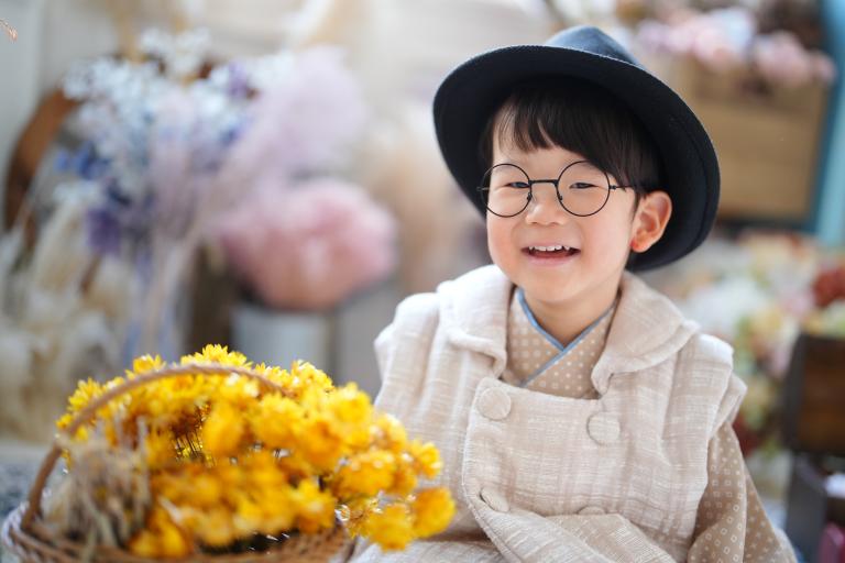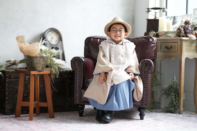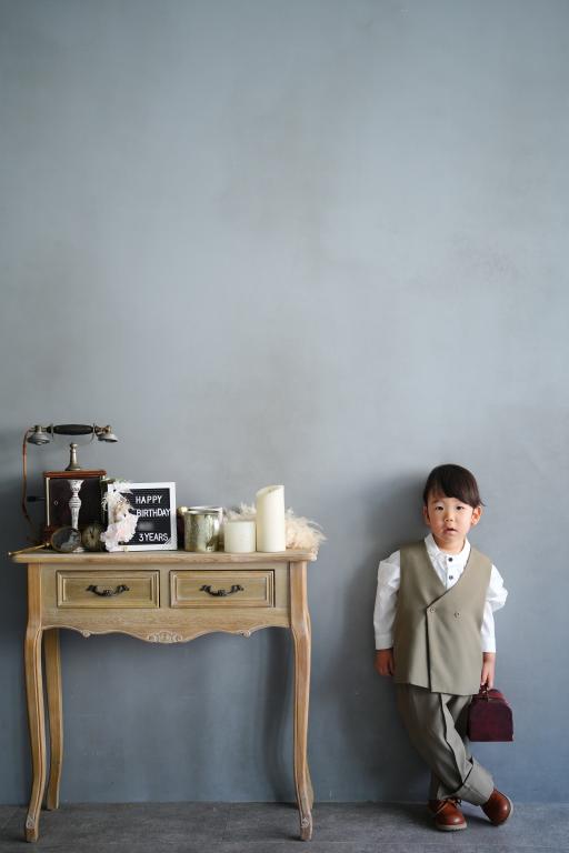 当初バースデー撮影の予定でしたが、折角なので洋装でバースデー撮影を半分撮り、残り半分を和装に着替え七五三撮影にカスタマイズ!最初から笑顔でスタジオでの撮影を楽しんでくれていたみたいで良かったです!和装に関してはスタジオの雰囲気に合わせて作ったオリジナル和装を着用いたしました♪
