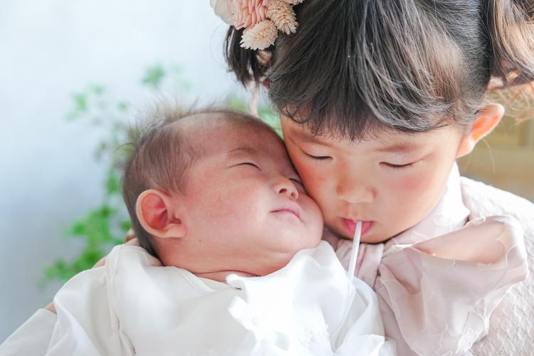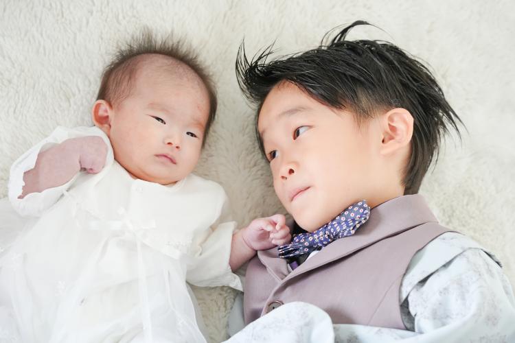 寝てしまった末っ子ちゃんの準備が整うまで兄妹の2ショット撮影です。