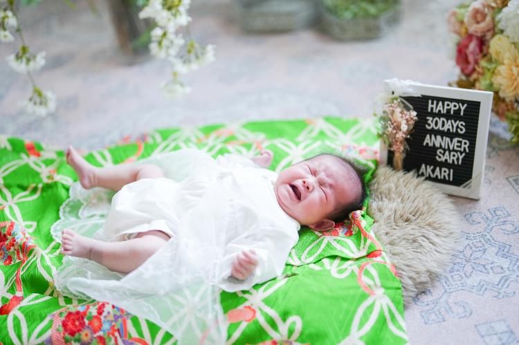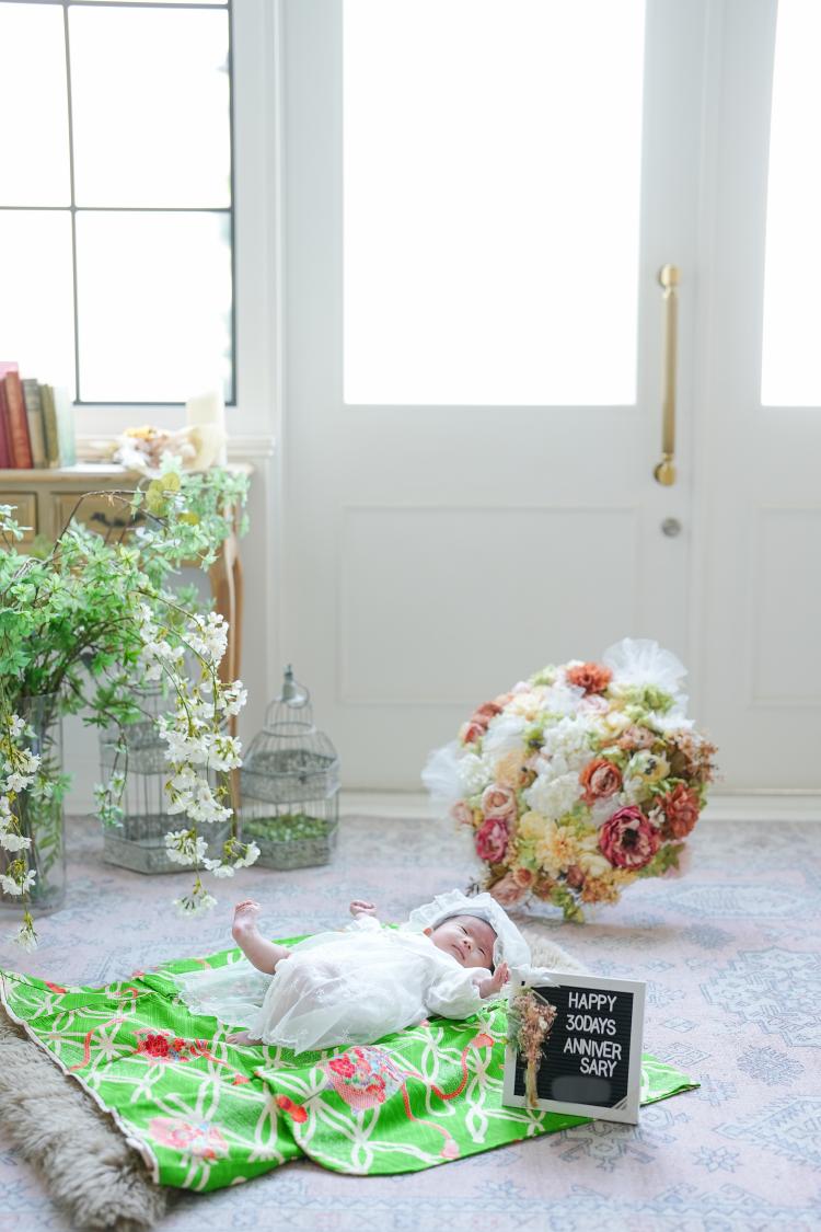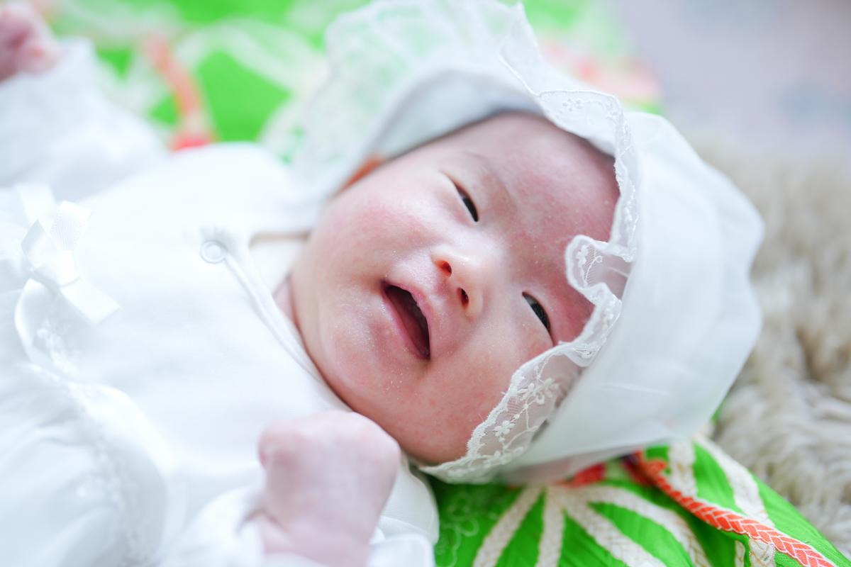 お兄ちゃん、お姉ちゃんが着付けやヘアメイクをしている間に、お宮参りのお嬢様のソロ撮影からスタート!