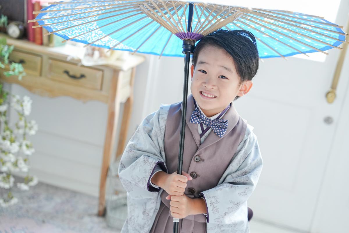 青い傘を持った撮影では、元気いっぱいの表情とちょっぴりやんちゃな雰囲気が可愛く、スタジオの空気も一気に明るくなります。