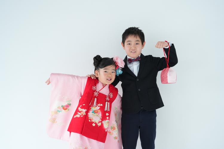 白ホリゾントでは、しっかりとした七五三 写真のイメージで。