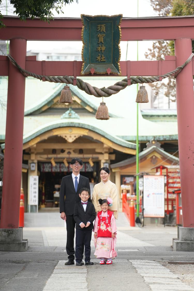 ご家族4名での家族写真、そして須賀神社でのロケ撮影まで、たっぷりと90分。スタジオとロケ、両方で700枚以上のデータをお渡しする、充実した一日となりました。