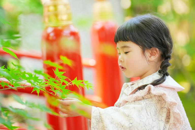 大鳥居前や社を背景にお撮りするのはもちろんですが、おすすめは社務所に続く小道です。七五三シーズンには紅葉を背景にお撮りしても素敵ですよ♡