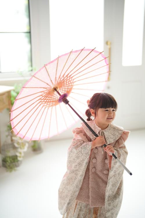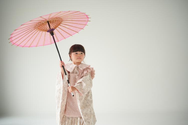 〜和傘を手に、白ホリゾントで輝く3歳らしい表情〜