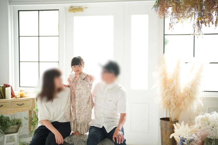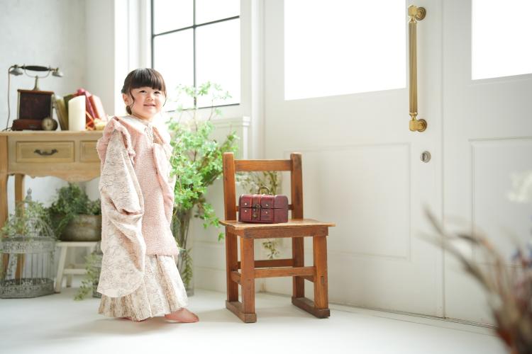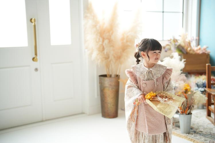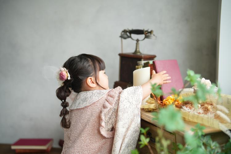 3歳の女の子は、当店オリジナルの和装に身を包み、自然光がたっぷり差し込むスタジオでソロ撮影がスタートしました。