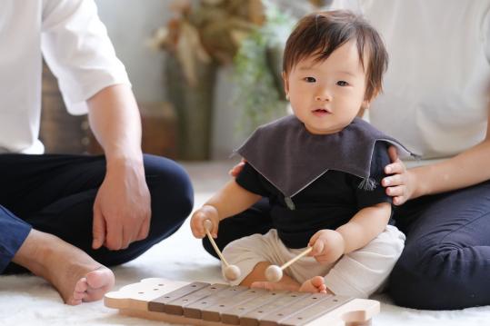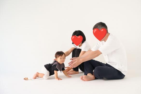 初めてのスタジオ撮影だとお子様が緊張したり、人見知りのお子様だとスタッフを見て泣き出してしまう事もございます。その場合、まず初めはパパママと一緒に撮ることで徐々に緊張を和らげていきます。それにスタジオにはお子さまを笑顔にするカメラマンやアシスタントがいますので、一緒に遊びながら素敵な表情を引き出します!