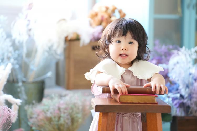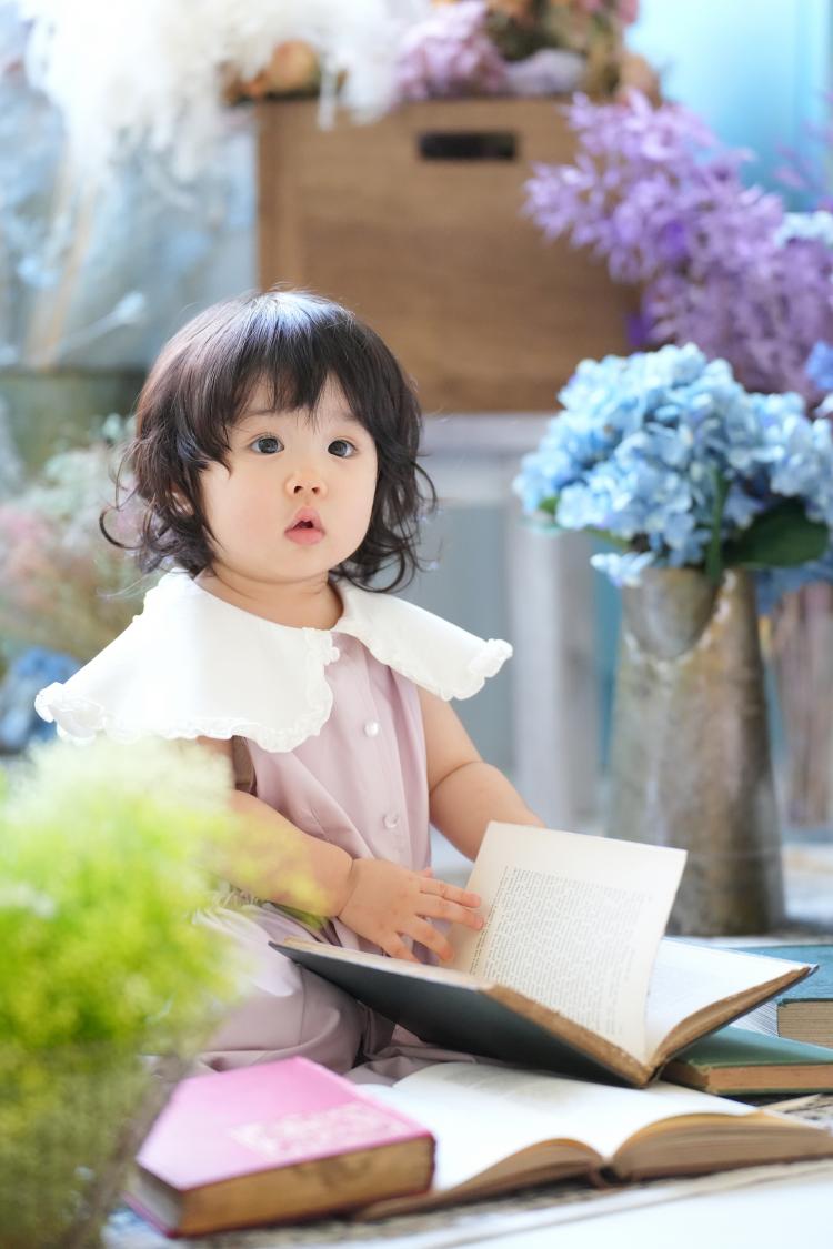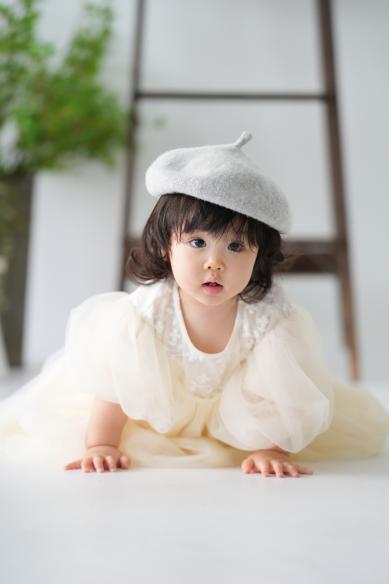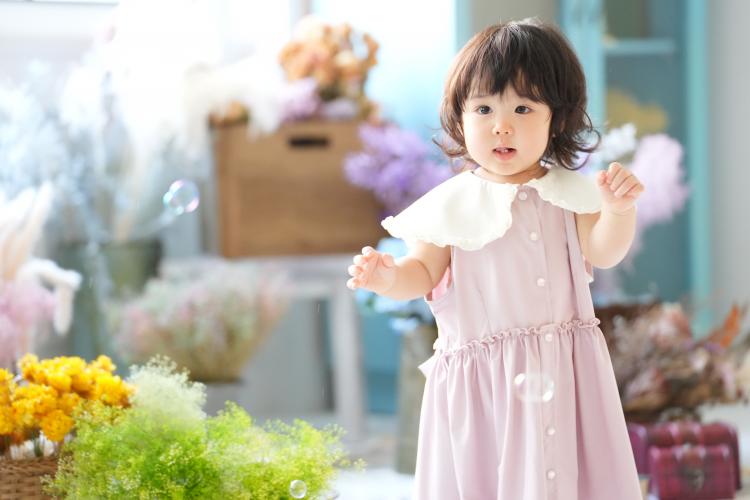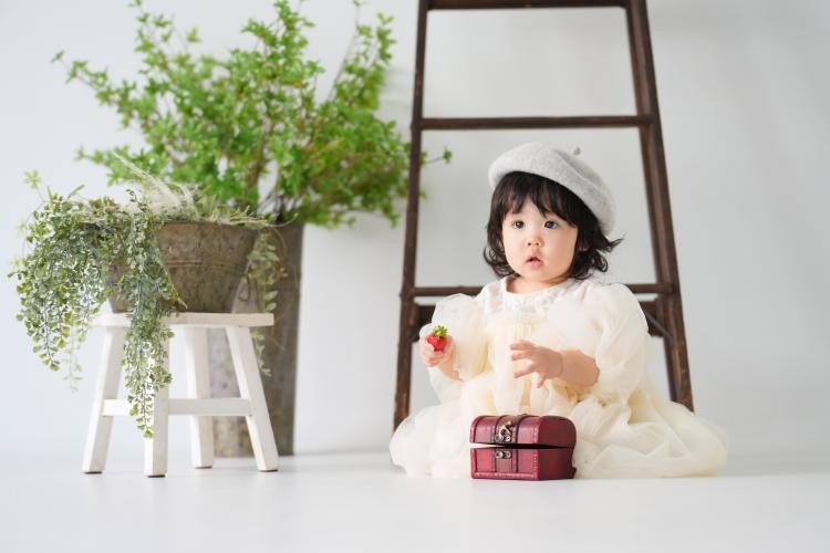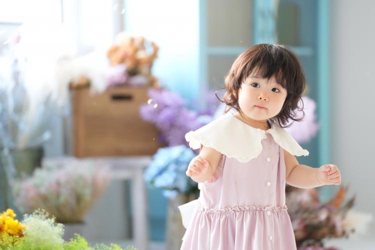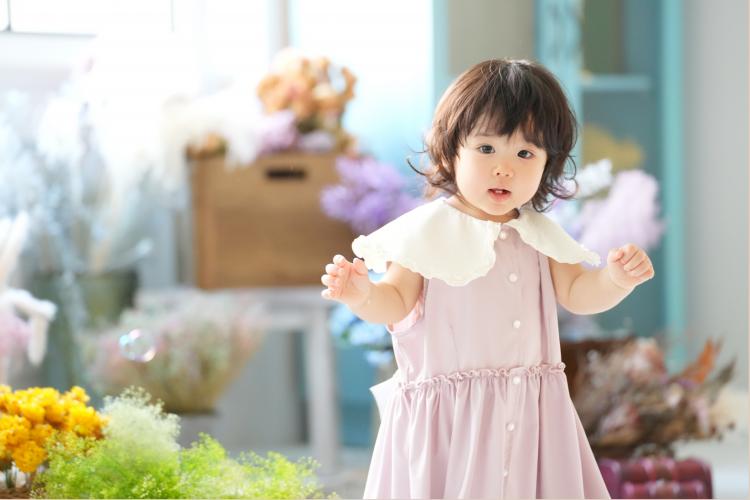 まずは持込のお洋服で家族撮影とお嬢様の一人撮影にチャレンジ!