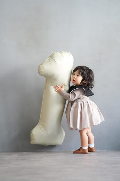 1歳のバースデー撮影の大きい風船と一緒に撮影♡