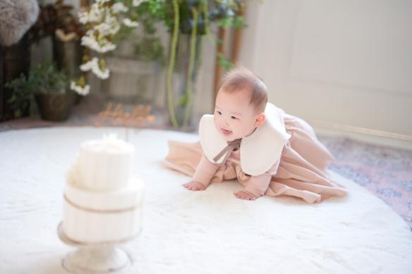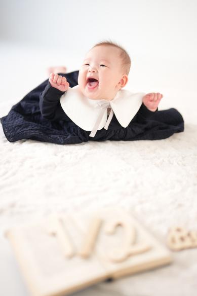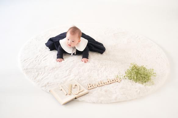 ハーフバースデーの撮影は、うつ伏せが上手にできるようになったりと成長を感じられるタイミングとなります。