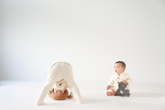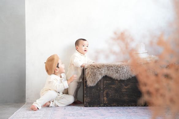 今回ご紹介する撮影は、ベビーフォト バースデー 1歳男の子の撮影です。兄弟でお揃いコーデでスタジオにてお写真をお撮りしました。貸切りだからこそできる自由な撮影でございます。兄弟写真ではお兄ちゃんの協力もあり、仲良く撮影することが出来ました!