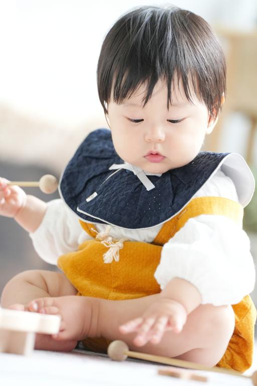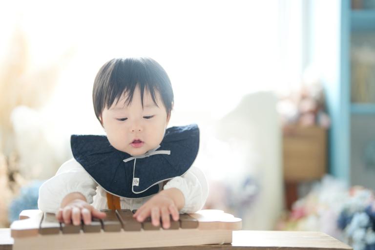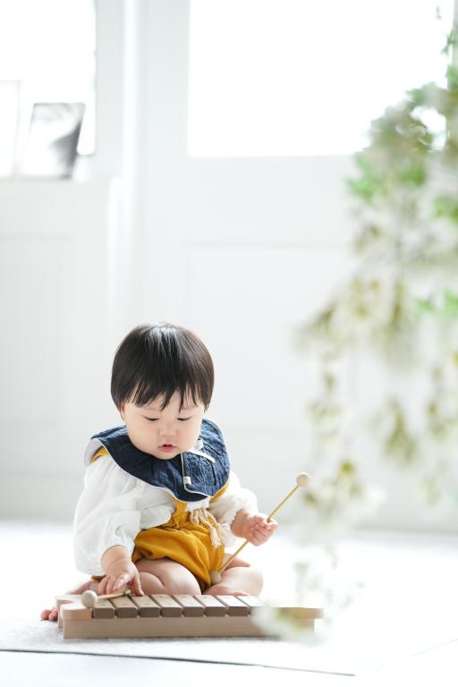 最初にスタジオの小物である木琴が気に入ったようで、叩いたりして楽しんでくれていました!
