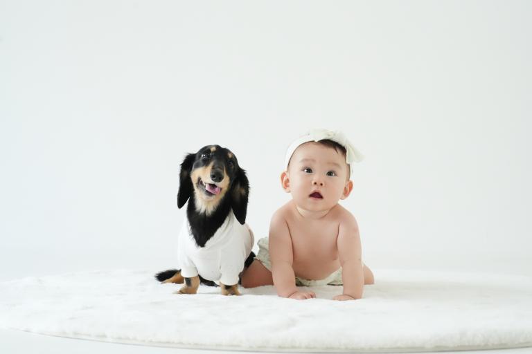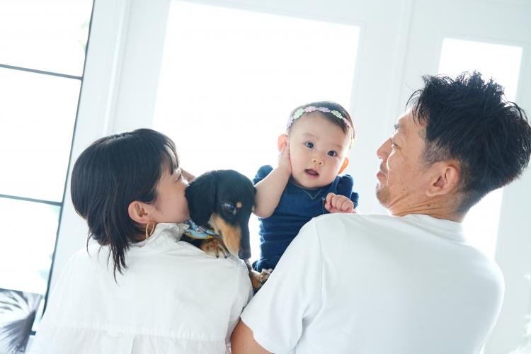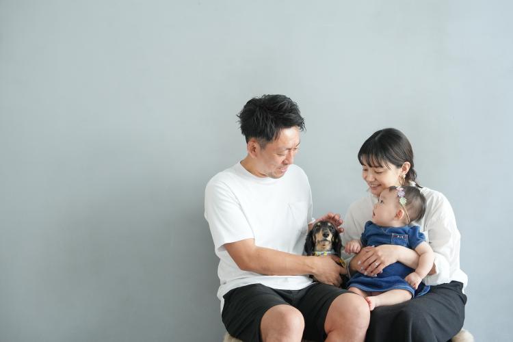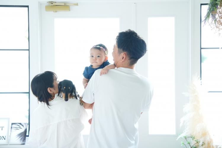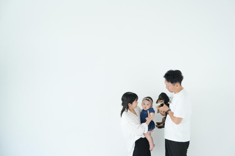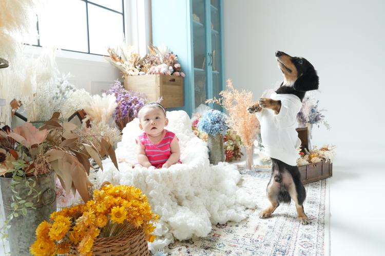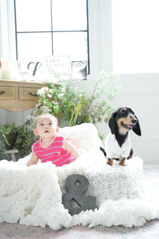 まずは初めに、お子様ソロ撮影からスタートしていこうと思いましたが、ペットのワンちゃんが一緒に入りたがっていたので、様子を見ながら、ソロと2ショットを撮影していきます!笑