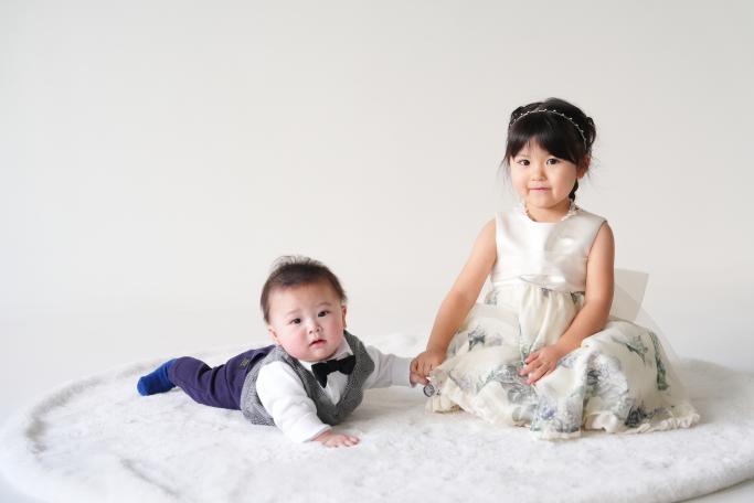 ◆費用:合計¥49,300 (撮影代金¥34,800(PlanA土日祝日スタジオ60分)/洋装(姉)¥2,500/商品代金¥12,000(ソフトブック))
