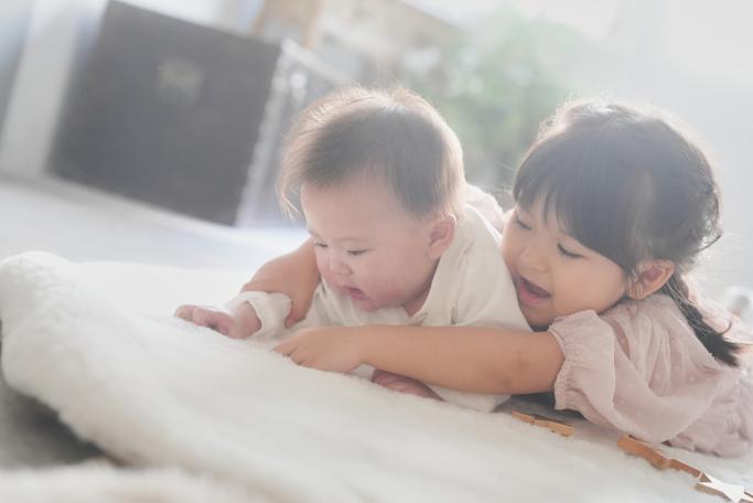 1人撮影から始めると不安になってしまうため、お姉ちゃんにそばにいてもらって少しでも安心してもらいます!