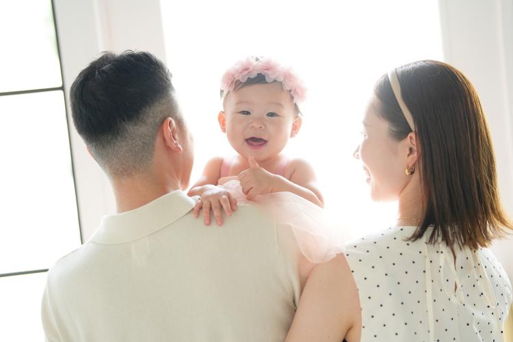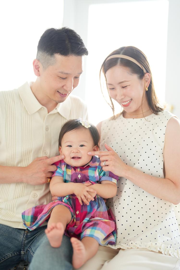 はじめは緊張するのかな?と思いきや、パパとママに囲まれてすぐに笑顔を見せてくれました!