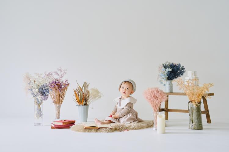バースデーの撮影であればタペストリーやガーランドなどを使って演出をしたりするのでご希望の方はお気軽にお伝えください(^ ^)