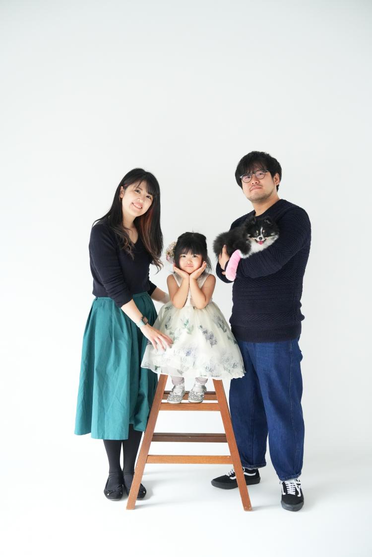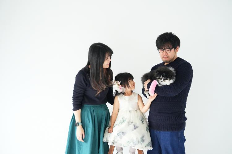 続いて、同じ背景でご家族とワンちゃんとの撮影へ。