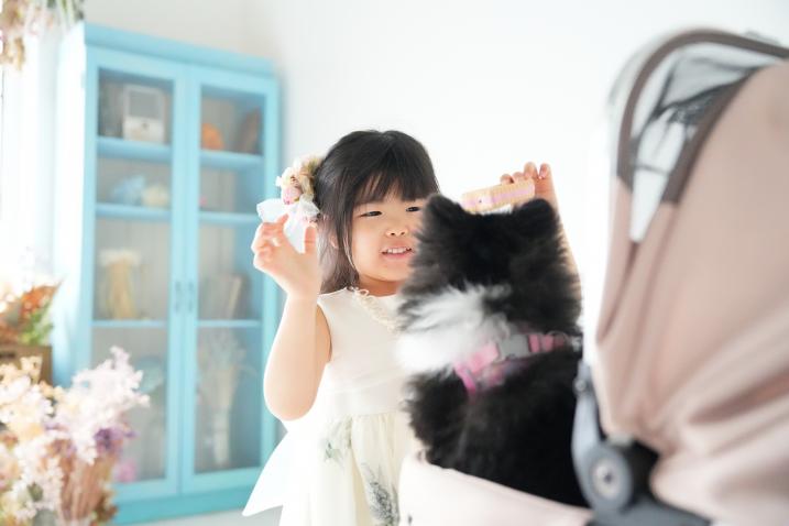 今回は4歳記念のキッズフォトと、ポメラニアンのワンちゃんとのペット撮影。