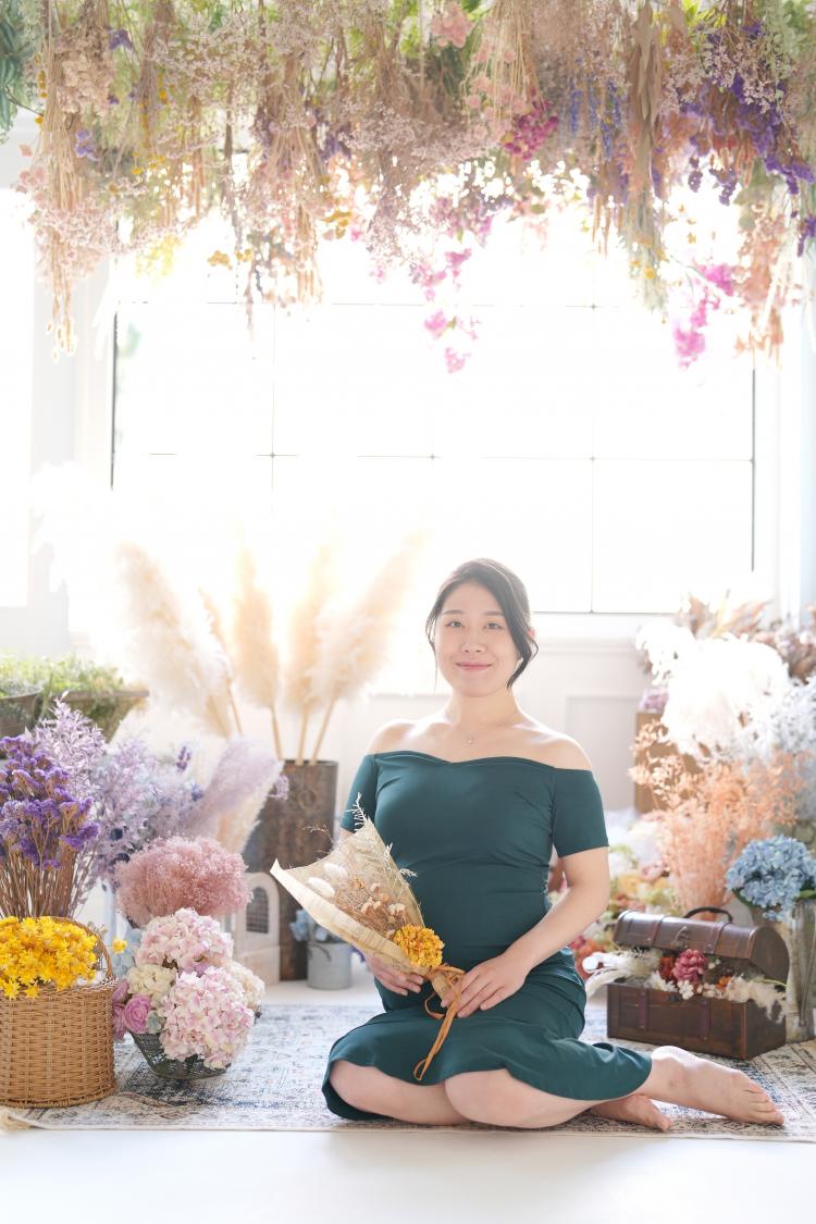 華やかなドライフラワーが奇麗なお花シーンで、自然光を使い明るく柔らかいお写真も♡