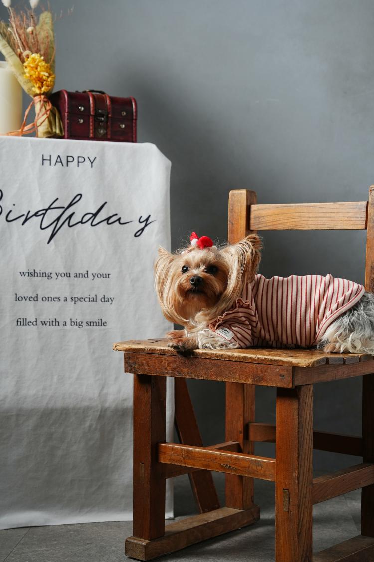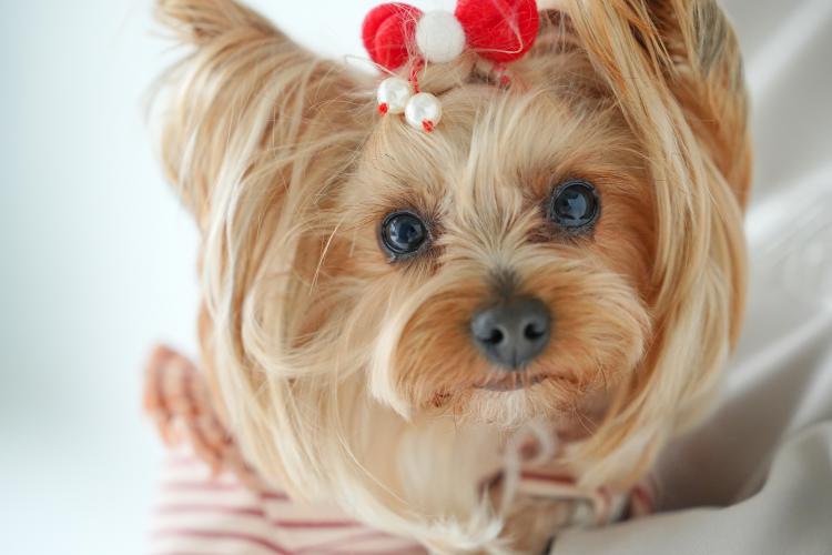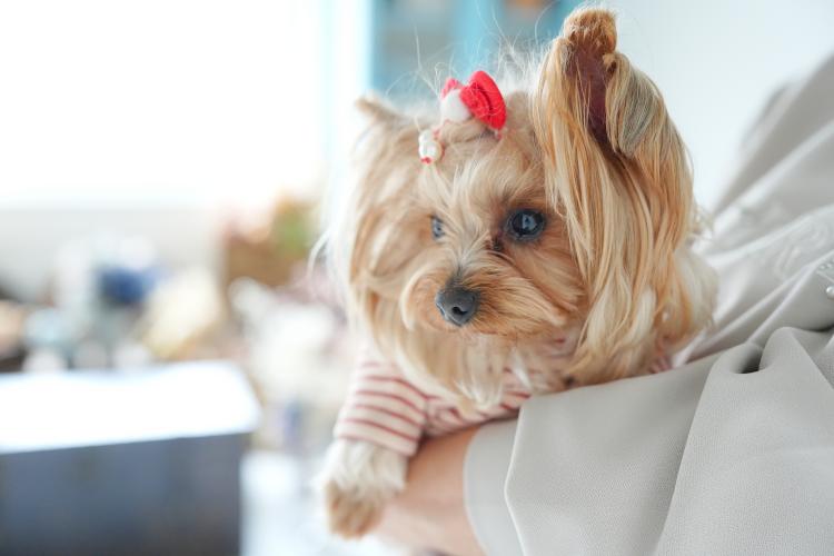 ご来店くださったのは、ヨークシャテリアの男の子と飼い主様お一人。以前、証明写真でご利用いただいたご縁があり、今回はワンちゃんのお写真を残したいとのことでお越しくださいました。