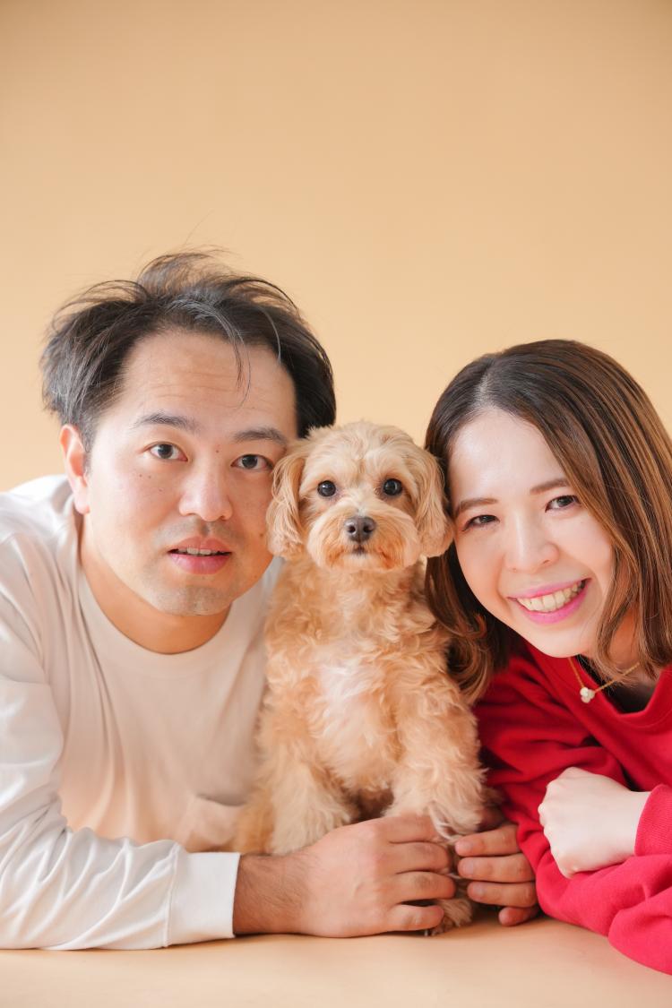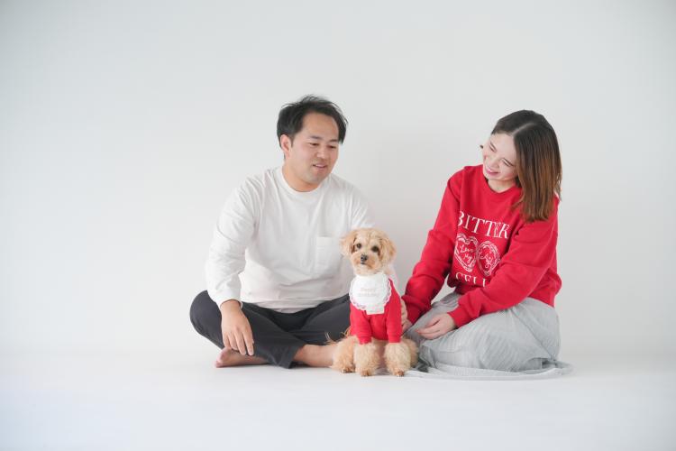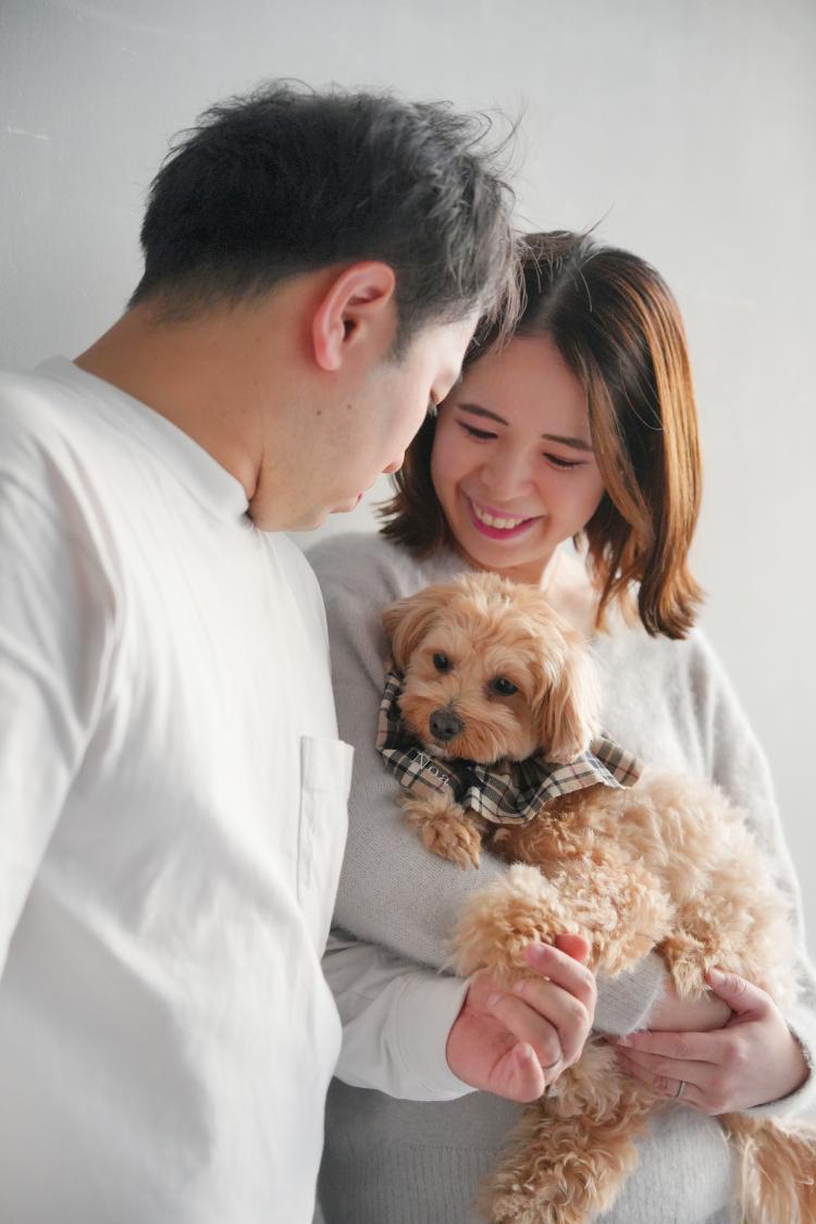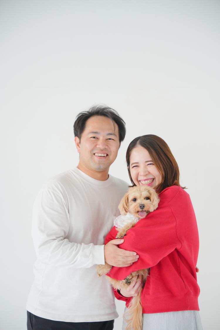 最後にワンちゃん洋服なしVerの家族写真を撮影していきます!