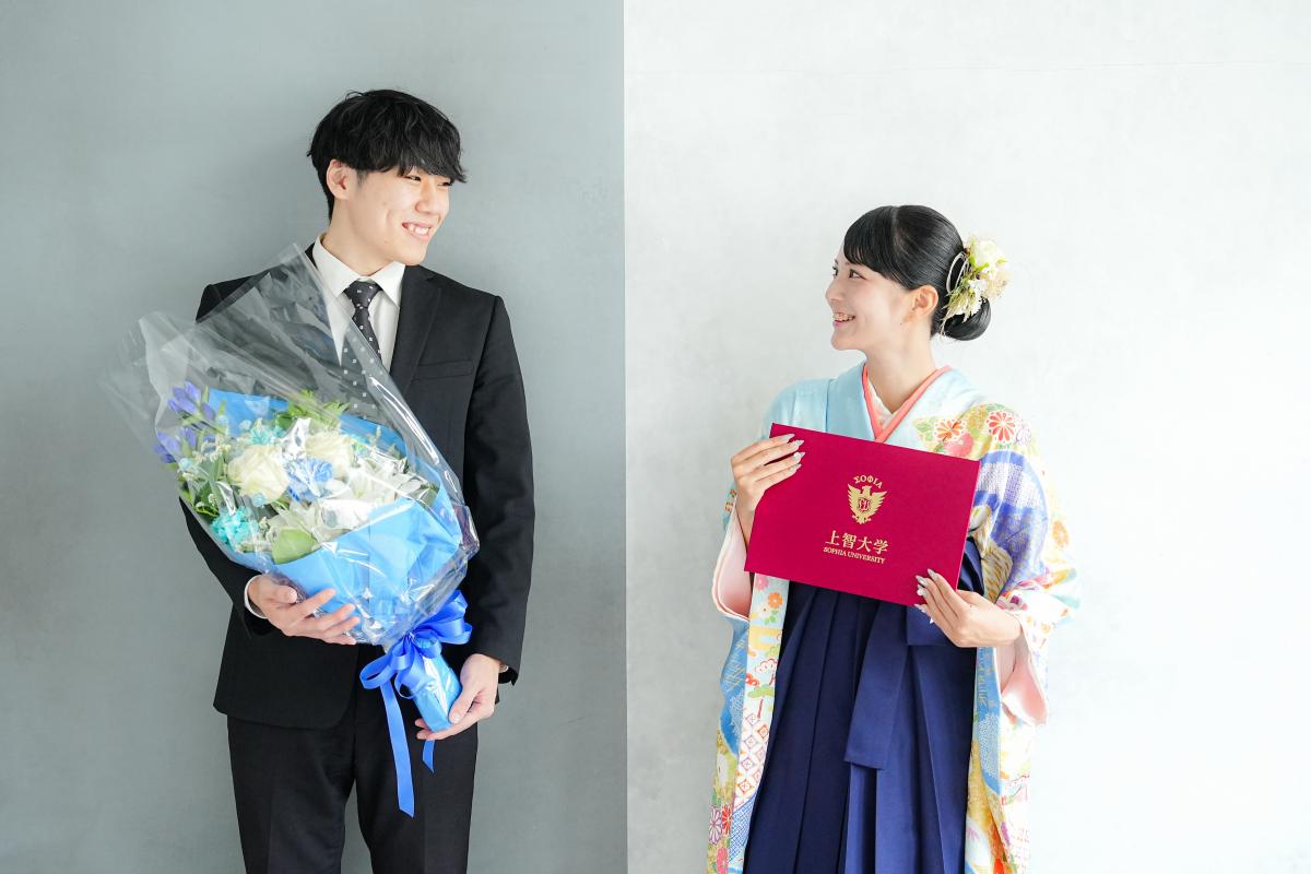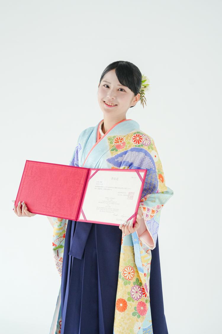 凛とした立ち姿やふとした笑みには、大学生活の思い出と新しい一歩への期待が感じられました。