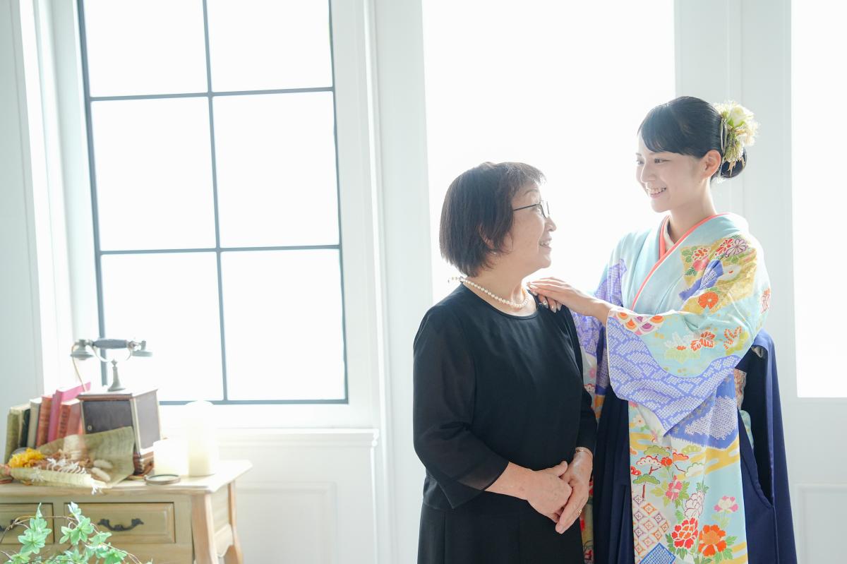 袴や髪飾りの華やかさに加え、何気ない笑顔ややり取りが写真に収まることで、